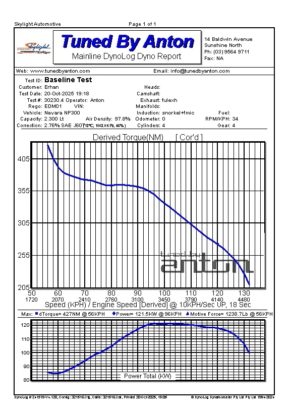 This Navara came in producing 28kw in limp mode. In summary vehicle encountered a ecu defect, the ecu was replaced and we proceeded with tuning. Day after day towing a large bricklayers trailer, we maintained power output to moderate combustion temperatures thus preserving reliability.